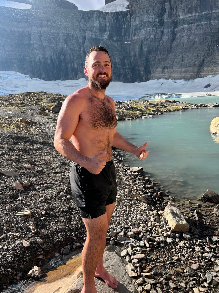 On top of that, I also got to swim in the glacial lake, AND we saw some wild Grizzly bears at exactly the right distance (no spray or bullets necessary)!